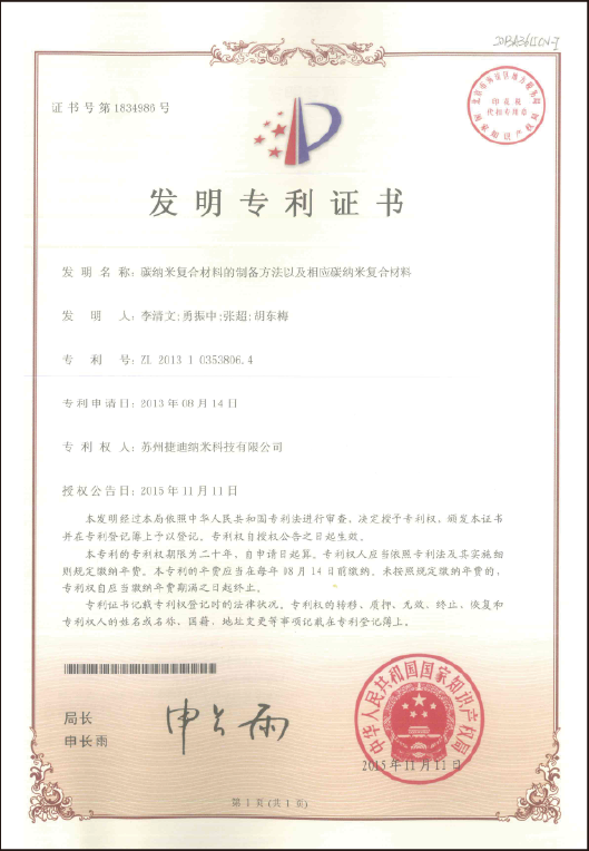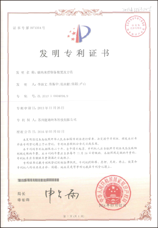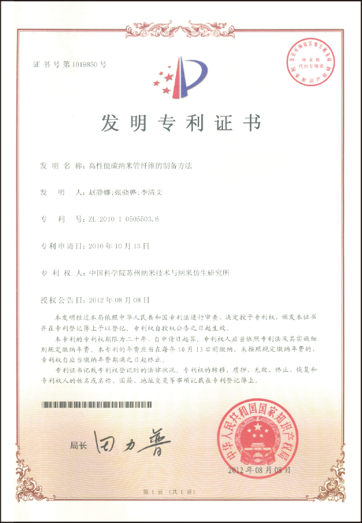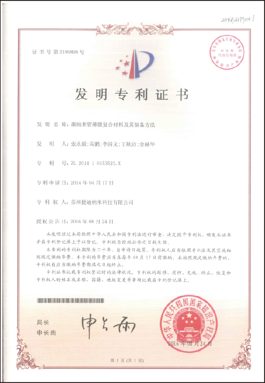 公海赌船纳米科技在碳纳米管薄膜规模化制备方面,形成了自已的独有工艺:在连续制备装备、工艺及薄膜后处理、纯化、薄膜符合材料等各个环节,均拥有核心技术,并获得了专利成果:截至目前,共申请了110项发明专利,其中已授权82项。