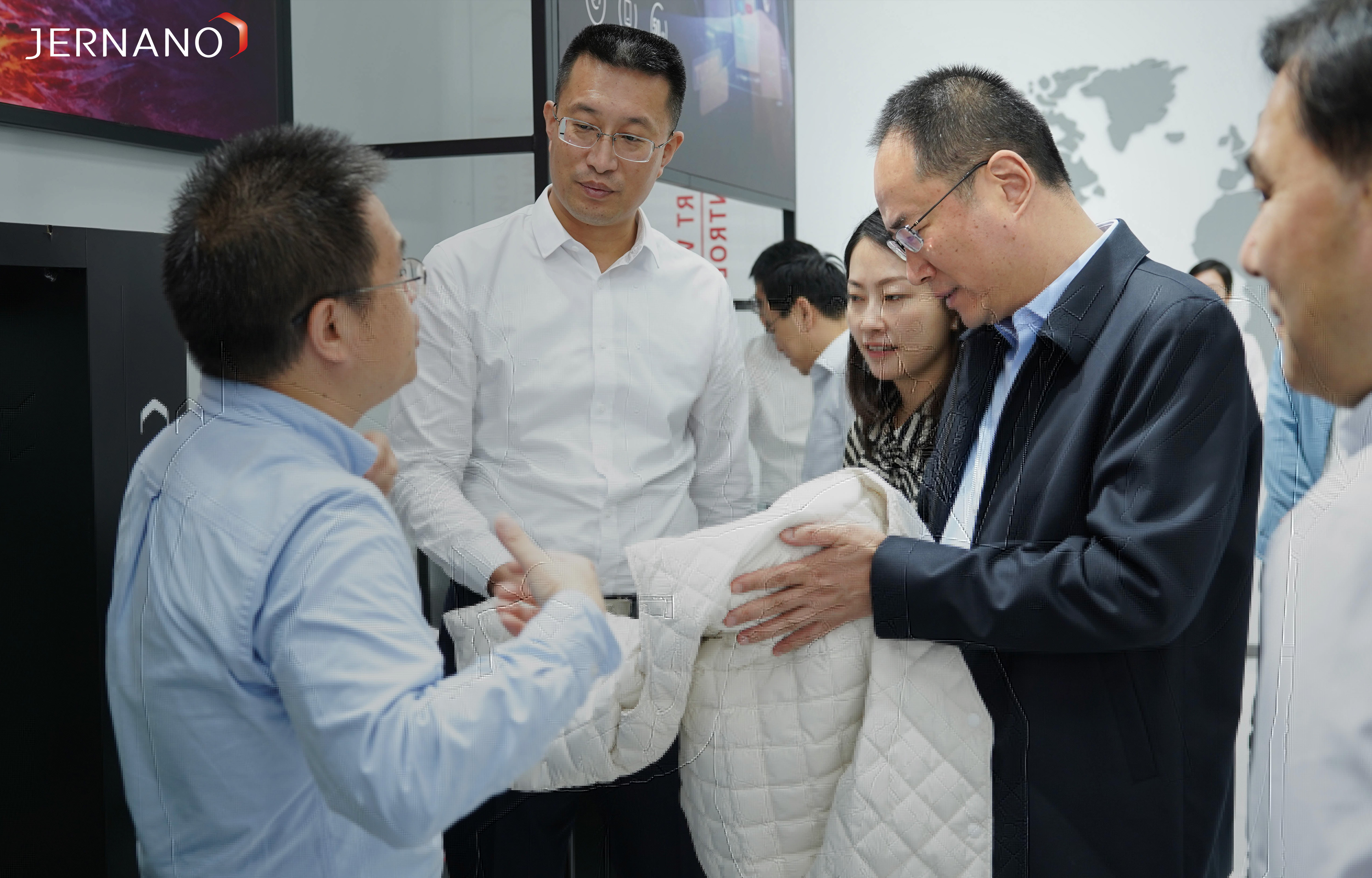 韩卫书记深入了解体验了我司专利碳膜材料在衣、食、住、行各方面的一系列创新应用,涵盖服装穿戴、智能家居、智能出行、能源发电等多个领域,并对我司目前取得的商业化成果给出高度称赞,给予我司未来发展更多的信心。